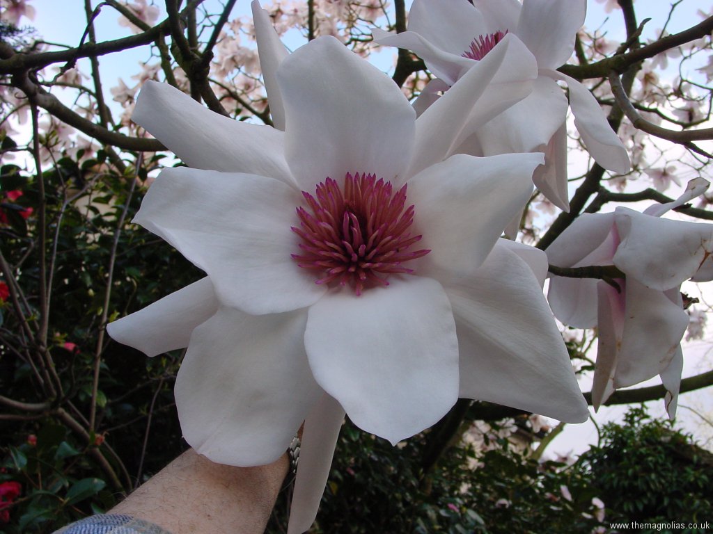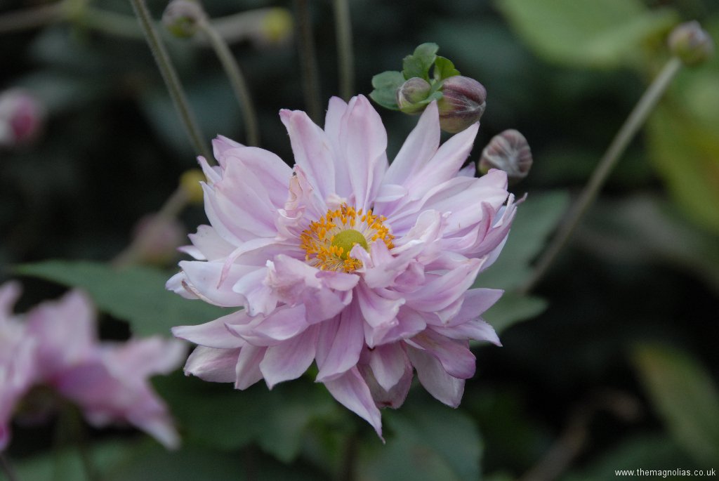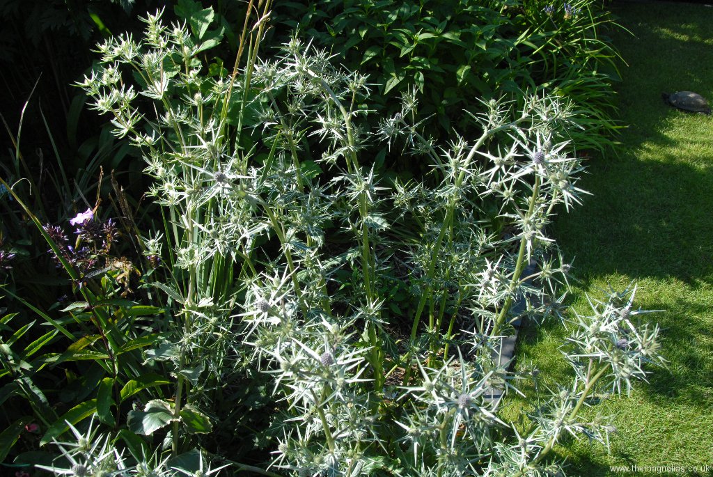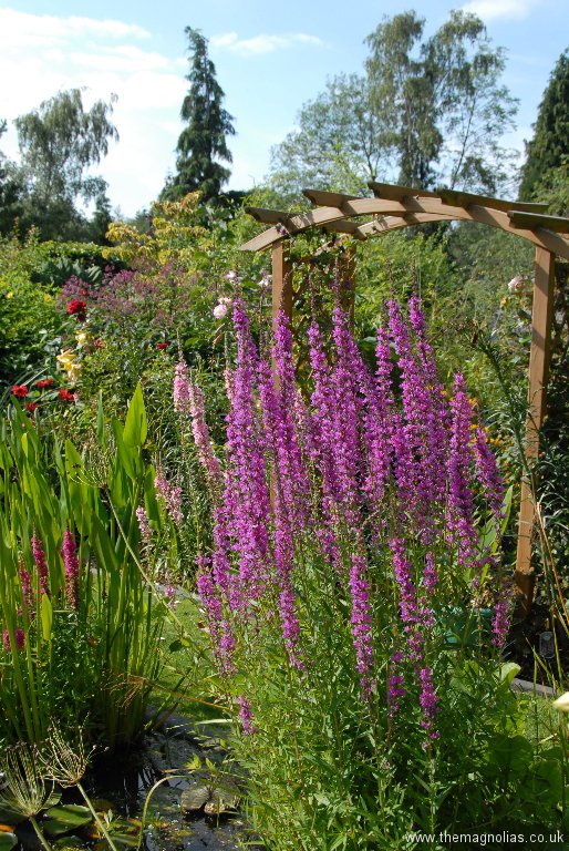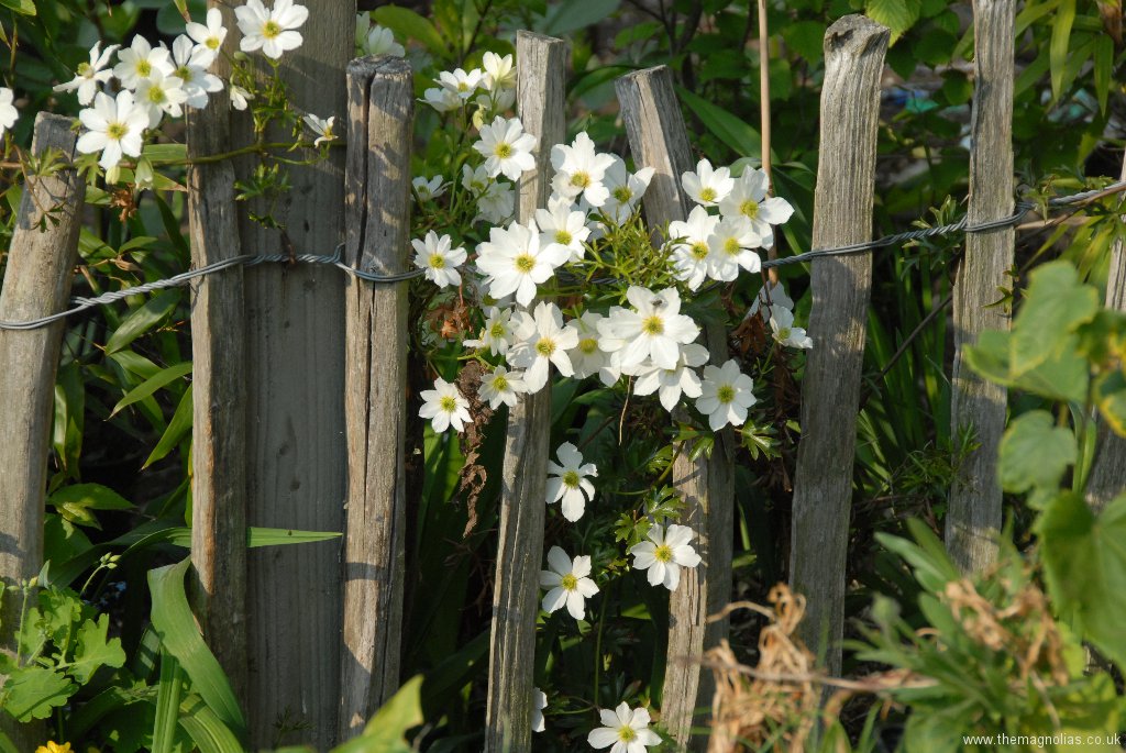 I constantly raised the canopy of Dahlia leaves to reduce the shading to help the other plants. In the autumn a storm snapped off the three smaller stems of the white flowered form and the single stem of the pink.