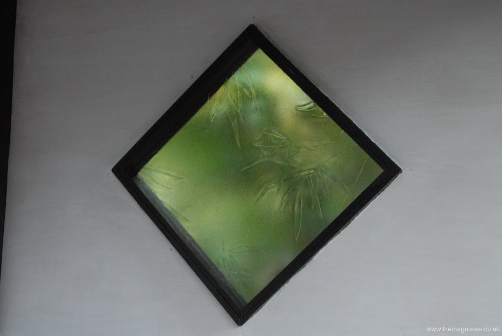 We took a short trip to Brentwood Glass to choose a patterned glazing of some description. We nearly chose a geometric type to mirror the fancy woodwork of the handrail. When we were offered bamboo embossed glass we immediately new this was the best choice.