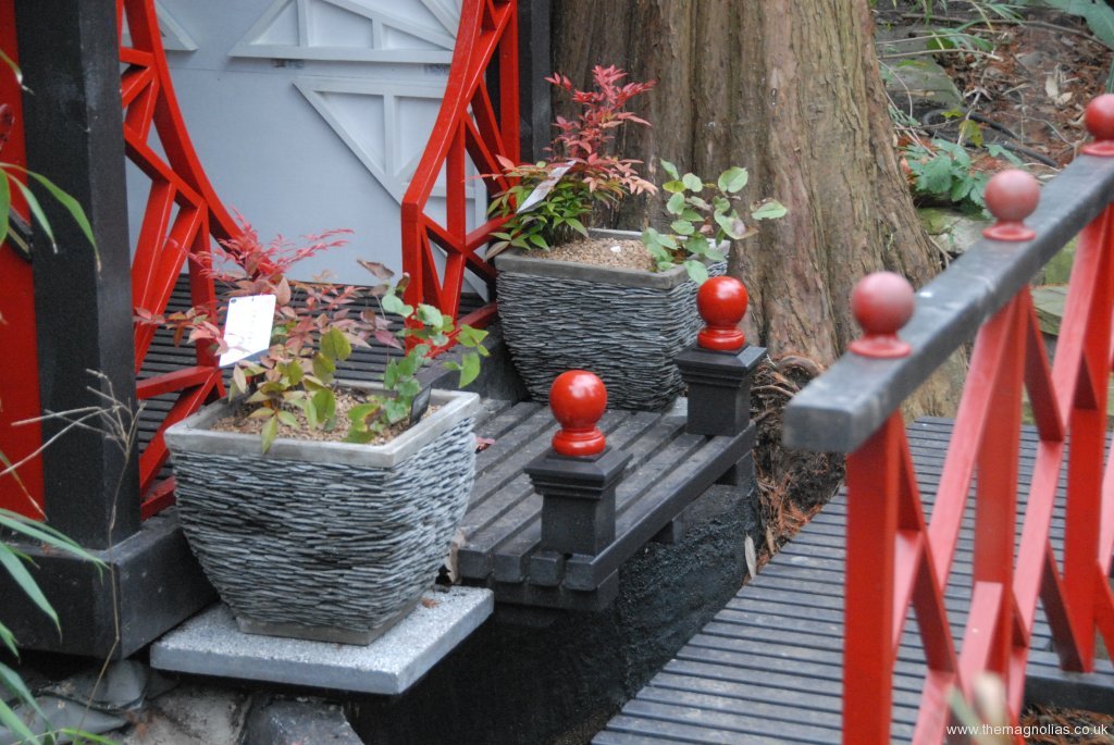 These have proprietary fencing caps and ball finials added. Each square pot was planted with a Nandina domestica ‘Gulf Stream’ and an Epimedium ‘Tojan’.On a recent visit to our local Wyevale Garden Centre we found a fair representation of oil lamps for £9.99 each With a £4.00 voucher, they weren’t an expensive addition to the project!