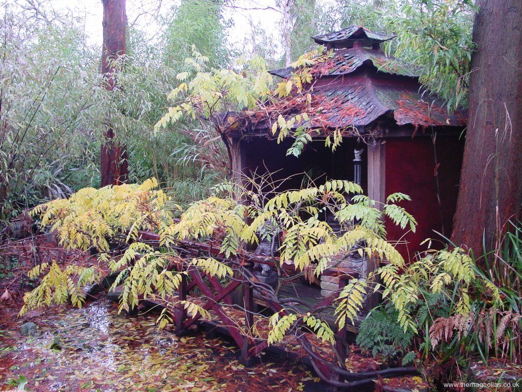 At last spring’s Epimedium Open Weekend we discussed its demolition and replacement with several groups of visitors. To our surprise quite a few people said this would be a shame as it had a lovely “lost Garden of Heligan” look. However it was beginning to lean perilously to the point it was clear it would fall into the pond before too long.